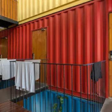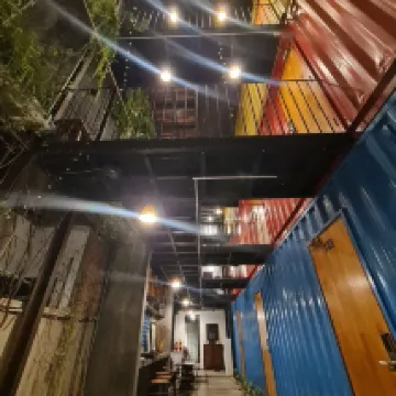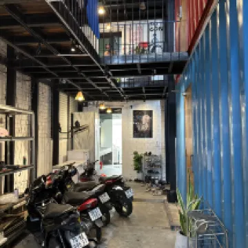 Interesting design with cargo containers for dorms and communal areas on the ground (bar) and 4th floor rooftop. The catwalks give a very spacious open air feeling. I stayed in the 4 bed dorm which was comfortable, but I imagine the 6 can be a tight fit. Located in the less crowded/touristy North area of Nha Trang means less shops/restaurant options but enough to get by in walking distance. ~5 min ~$1 usd grab bike ride to "downtown"