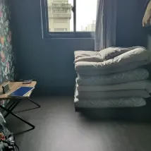 寝るだけで良いと思い、予約したのですが...。 両隣りの人の声、電車の音等、酷かったです。 また、写真は照明があったり、壁もウッドタイプのようになっていて、雰囲気良く写ってましたが、全く、違いました。 壁は、普通の白い壁紙でした。 部屋は、かなり、古く、畳は、ヘリが擦れ切れた3畳の部屋でした。 かなり、衝撃を受けました。 寝るだけも無理でした。 近隣のホテルを探したのですが、なかなか。 ちょうど、近くに、朝までやっている大きなスパがあり、そこで、朝まで過ごしました。 男性なら、良いのかもしれないのですが、女性には、厳しすぎるホテルだと思います。 という事で、布団を広げる事なく、荷物置き場として利用させていただきました。 唯一、フロント脇にある無料のドリンクコーナーが良かった点でした。 外国の方もかなり、多かったです。