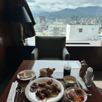 ホテルはJR小樽駅から徒歩約10分の場所にあります。小樽駅を出て、正面の中央通りを都通りまで歩き、右折して都通りを5〜6分進むとホテルのサイドエントランスに到着します。都通りには屋根があるので、雨や雪の日でも安心です。小樽運河までも遠くありません。 ツインルームは日本のホテルにしては広めで、窓はFIX窓で開閉できませんが、特別閉塞感はありませんでした。ホテルの朝食は7時からで、11階はビュッフェ形式で窓からの眺めが素晴らしいです。料理の種類は多くありませんが、和洋食が揃っています。3階は和食のセットメニューでしたが、今回は利用しませんでした。ホテルには温泉もあります。