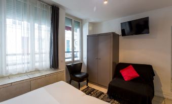 Шикарный отель в отличном районе Парижа ,очень удобное расположение,до всех достопримечательностей пешком по 20-30 мин ,метро возле отеля в 5 мин пешком,супермаркеты рядом с отелем ,свежие багеты в 2 мин от отеля .Сначала заселили на 4 этаж ,в очень маленький номер,где нет wi-fi ,но на следующее утро без проблем поговорили и заселили в шикарный номер на 1 этаже где есть интернет и рядом кухня со всеми принадлежностями.Отдельная благодарность русскоговорящей девушке, уборщице,которая помогла решить все вопросы ,вы очень добрая и отзывчивая,успехов вам .Отель советую 1000% ,местоположение очень хорошее ,вечером до Мулен Руж 10 мин пешком,Монмартр 15 мин пешком.