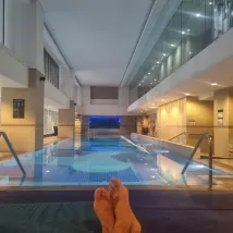 ジョイ・ノスタルジ・ホテル&スイーツで娘の誕生日を祝いました。Exe King Studioを3泊2日(土曜~月曜)で予約しました。部屋にはバースデーケーキと無料のお菓子が用意されていました。部屋は清潔でキッチン付き。バスローブは1着のみ。炊飯器はなく、クローゼットにはハンガーが1本しかありませんでした。私たちがリクエストしたところ、ハンガーと炊飯器を用意してもらうのに3時間近くかかりました(30~45分ごとに確認しています)。プールはまあまあですが、塩素の臭いが強かったです。毎週日曜日に水泳教室があることを知らされておらず、プールは人でいっぱいで、まともに泳げません。週末に宿泊し、子供がいて泳ぐ予定の方は、日曜日は避けた方が良いでしょう。管理者には、プールエリアで毎週日曜日に水泳教室があるという告知を掲示してほしいです。ただ、プール自体が小さいので、水泳教室があると想像してみてください。たくさんの人や子供が出入りしているはずです。宿泊した部屋はとても清潔で、キッチンにはオーブン、冷蔵庫、電子レンジがあり、調理もできました。バスルームも問題ありませんでした。ただ、物干しロープが壊れていて使えませんでした。また泊まるかもしれませんが、日曜日は絶対に避けた方が良いと思います。サービスに感謝します!