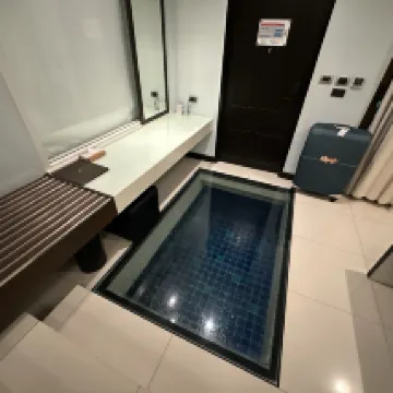 プールに直接アクセスできる部屋に宿泊しましたが、部屋は清潔で、入口のドアの下に大きなガラスがあり、プールの底が見えるのでとてもユニークでした。朝食はまあまあでした!環境はとても静かで、スタッフはとても丁寧です。 ただし、ホテルの場所は少し離れていますが、車で旅行する場合はまったく問題ありません。機会があれば必ずまた来ます!