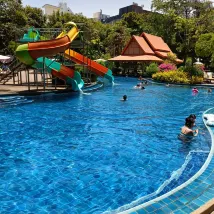 大切な家族とリーズナブルな料金で宿泊することが出来ました。 お部屋はプールビューのキングベッドタイプ。部屋の広さも充分で、簡単なキッチンまで付いていました。長期滞在する方は重宝すると思います。 プールはかなり深めの3M〜浅いところは0.5Mくらい。隣の系列ホテルのプールも使用可で、子連れは滑り台付きのプール利用が良いと思います。 また機会があれば利用させてもらいます。