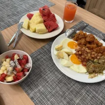 全体的に良いモーテルでした。毎日清掃があり、清潔で静かでした。朝食は素晴らしく、選択肢も豊富でした。プールは深くて気に入りました。唯一気になったのは、朝食中もプールの近くにハエがいたことです。スタッフは普通でした。部屋には新しくてパワフルなエアコンがあり、これも良かったです。ただ、飛行機が遅れたため滞在を6時間延長してほしいとお願いしたのですが、600バーツも請求されました。フロア全体が無料だったにもかかわらずです。1泊2,500ルーブルの部屋を考えると、これは非常に高いです。6時間なら250バーツで済むはずです。