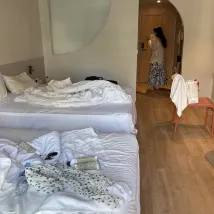 すごく可愛いお部屋でお水も可愛かった!!日本に持ち帰った!!受付の人も丁寧に対応してくれた! チェックアウト後でも荷物置いて出かけても大丈夫だし、空港までのタクシーが少し遅れてるって言う連絡もしてくれた!