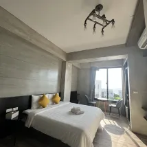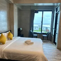 The room was luxurious and spacious with a very cool retro style. The bathroom was fabulous with a massive bathtub.