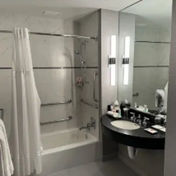 The room is modern but a bit small. It is difficult to compare American hotels with Asian hotels where amenities like shaving and toothbrushing needs are also met. No re-usable paper slippers are available in the room as well, not to mention free bottled water. The price is not highly competitive though. One good thing is that extension of my checkout time to 4pm only required me to pay an extra small amount of money which I fully appreciated that.