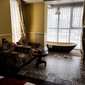 部屋は少し古びていて埃っぽかったですが、広々としていました。それにバスタブと景色は最高でした。 受付のスタッフはとてもフレンドリーで親切でした。 私の部屋(1001号室に宿泊)の上の部屋か近くの部屋が改装中のようです。でも、日曜日の朝8時に宿泊客がいるのに、あんなに騒がしくする必要はなかったと思います。
