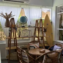 価格に見合った良いホテルです。宿泊には十分適していますが、お湯が出ないのが少し残念でした。ヒーターはあるのですが、電源が切れているような感じでした。 マットレスは柔らかくありませんが、私にとってはプラスです。エアコンは優れており、低速では静かに作動します。 部屋は清潔で、必要なものはすべて揃っています。ケトル(コーヒーや紅茶はありません)、水のボトル 2 本、ヘアドライヤーがあります。ホテルのデザインは魂を込めてマリンスタイルで仕上げられており、サーフボード、オール、海の置物、貝殻などがいたるところに飾られています。 窓から見える景色は工事現場のようで、夕方9時頃までは工事の騒音がありましたが、私たちはここで一晩過ごしたので気になりませんでした。 短い旅行であれば、お金に見合った価値があります。