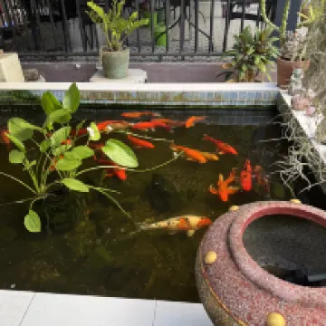 私はこのホテルが気に入りました。静かで落ち着いていて、緑も多く、朝には鶏の鳴き声が聞こえます。 魚のいるプールは本当に魅惑的です。リラックスしたい時におすすめです。
