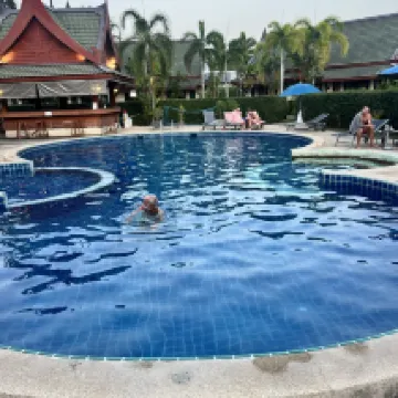 プーケット到着が遅かったので、空港近くのホテルを予約しました。結果的に大満足の滞在でした。 環境:静かで快適でした。 設備:少し古さは感じるものの、比較的清潔です。隣にセブンイレブンがあり、買い物に便利でした。 サービス:フロントの対応がとても良かったです。延泊することになり、朝食は含まれていないとのことでしたが、当日チェックアウトすることを知ると無料で提供してくれました。 全体的に👌です。