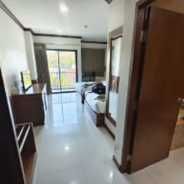 全体的なサービスは良かったです。私は英語もタイ語も話せませんでしたが、終始スマホの翻訳アプリを使ってコミュニケーションを取り、スタッフの方々は辛抱強く対応してくれました。2泊しましたが、別々の予約だったにも関わらず、スムーズに連泊できました。 ビーチまでは1kmで、道中には地元の市場やバーベキュー店があり、散策も楽しめます。パトンビーチほど賑やかではありませんが、十分に楽しめる場所でした。