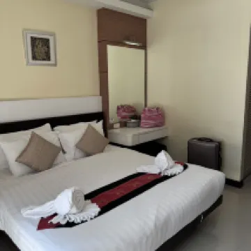 部屋はシンプルで上品です。同店では観光客向けに、サムスン製の電子レンジ、三菱製の冷蔵庫、ワードローブ、バスローブなどを用意している。バルコニーには物干しラック、小さな丸いテーブルと椅子があります。ホテルの中庭には非常に清潔で美しいプールもあります。左折して約100メートル歩くと、4つの道路の交差点にあるラワイビーチとカロンビーチ行きのバス停があります。右に曲がって40〜50メートルほど歩くと、ラチャ島やリペ島行きの船着場であるチャロン桟橋へと続く小道があります。当ホテルでは、乗客の送迎用のタクシーサービスも提供しています。価格もリーズナブルなので安心してご予約いただけます。