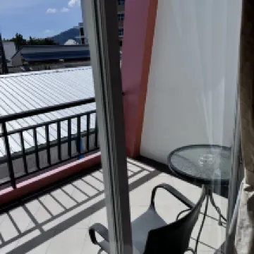 シャロンで宿泊施設をお探しの方にとって、価格と品質のバランスの点で優れたホテルです。とてもきちんとした客室には、ミニバー、大型冷蔵庫、電子レンジ、食器、バスローブ、スリッパ、すべての衛生用品が備わっています。エアコンは完璧かつ安全に作動し、19度まで冷えました。マットレスは適度な硬さです。バルコニーには物干しラックとテーブルと椅子があります。 7/11から2分の距離にあります。自転車と車の駐車場があります。スイミングプールがあります。