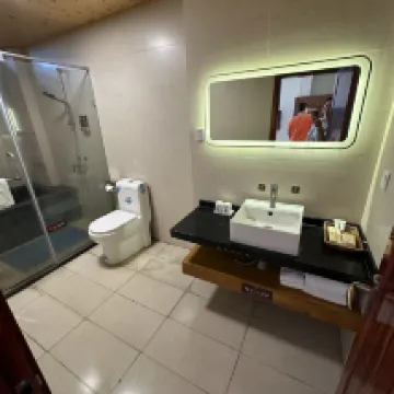 我定的是親子房,帶着小孩最注重的就是衞生。當天我們下午三點多辦理入住,門口一堆換的床單、水瓶,進入房內後,拖鞋衹有一對,浴巾衹有一條,衣櫃爛的、玩具亂的、床下還有垃圾、廁所上個客人用過的牙線都還在那。想打電話給前台,讓阿姨過來重新搞衞生跟補充日用品,電話機沒插線,插上線後也是壞的。小孩脱鞋在房裡玩,沒一會整個腳板底都黑了。去泡温泉,裏面客人有在池裡抽煙的,吃東西,毛巾掛的到處都是,杯子垃圾多的很,根本沒人收拾。第二天,前台12:30打電話給我(我沒接到),13:39又打了一通,接通後前台問:“需不需要繼續住,不需要的話要辦理退房手續了”我回答她説:“我在攜程上買的是寫着可以到14:00退房”,前台回覆我:“過年期間,酒店要求要儘快退房,好搞保潔,酒店要求12點退房,已經給我們延後到13:40了”我説:“我們已經收拾完準備下來退房了”前台很沒有禮貌的掛了我電話,沒有回覆。後來下去退房的時候,就找了前台質問,是誰那麼沒有禮貌蓋電話和為什麼那麼著急要客人退房説搞衞生,但衞生搞的那麼差?前台給的答覆是“對不起 過年太忙了”。 當時準備去盤龍灣時也看了很多評論,很多負評。想説普寧人也支持一下普寧產業,應該不至於那麼差。今日算見識了。 服務行業對待客户的態度很惡劣。壞境不好不壞。衞生十分堪憂。 建議培訓一下人員,簡直在趕客。 總結:下次都不會再去了。