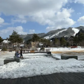 コンビニエンスストアやレストラン、リフト券の購入や用具のレンタルができるスキーハウスまで徒歩約5〜8分です。スタッフはフレンドリーで、部屋は清潔で広々としています。シャトルバスがない場合は、珍富駅までのタクシー料金は約20,000〜25,000ウォンです。