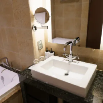 ホテルのアメニティと設備は5つ星ホテルほどではありません。歯磨き粉と歯ブラシは販売しています。朝食は5つ星ホテルとしてはまあまあでした。パンの選択肢はあまりありません。シャワースペースは狭いです。バスタブは良かったです。ベッドも良かったです。全体的にはまあまあです。でも期待以下でした。