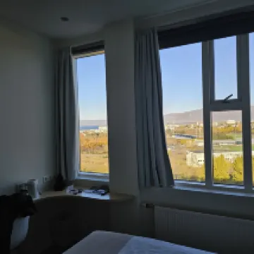フレンドリーで親切なサービスのおかげで、とても快適な滞在になりました。早朝のフライトに乗る予定だったのですが、朝食を早めに開いてくれました。 ダウンタウンから歩いて行くには少し遠すぎましたし、レイキャビクは丘陵地帯が多いです。ダウンタウンへのシャトルは数時間おきに出ていると思います。