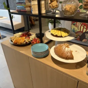 24 番のフロントデスク。 朝食はとても狭いです。