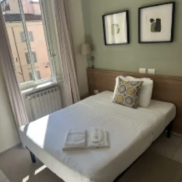 あまり期待していなかったので、この素敵な場所に驚きました。3泊の予定でしたが、予約は1泊だけでした。1泊でもう十分だったので、残りの週は別のホテルに泊まることにしました。 部屋は狭く、とても賑やかなエリアに面していました。窓を開けると外の騒音がかなり聞こえましたが、窓はしっかりしていて、閉めると全く騒音がありません! リチュアルズのシャンプー、ボディローション、石鹸を用意してくれました。 お気に入りです!なので、これは絶対におすすめです! 受付のスタッフ(3人と対応しました)は素晴らしかったです。 チェックイン前にリフレッシュできる広い共同バスルームもありました。ミラノからローマまでの寝台列車でローマに到着し、午前8時にリフレッシュしたかったのですが、チェックインは午後2時だったので、とても助かりました。 このエリアは実際にはとても個性的で、たくさんのレストランや質の高いショッピング街があります。 ベッドは快適でしたが、ベッドサイドテーブルは1つしかありませんでした。 エアコンはとてもよく効きました。 悪い点を挙げると、 * 目立つホテルなのに、ホテルを見つけるのが本当に大変です。2回も見逃してしまいました!そして夜に戻ってきた時にも、また見逃してしまいました。もっと見やすい場所が必要です。 * シャワーが小さいです。今まで小さいシャワーを使ったことはありましたが、ここはとんでもなく小さいです。私は中肉中背の女性ですが、カーテンしかなかったので、体を回すのが怖くて、浴室を汚してしまうのではないかと心配でした。シャワーを浴びるのは本当にストレスでした。 * テレビがありません!ユーロ女子カップの決勝戦を見たいと思っていましたが、そのためにはバーを探さなければなりませんでした…。 * 立地は私にとってはあまり良くありませんでした。コロッセオに行きたいなら良いのですが、それだけです。 * 部屋には無料の水がなく、水は2ユーロで、ミニ冷蔵庫がないため常温です。 * 100ユーロのデポジットが必要ですが、チェックアウト時に返金されます。クレジットカードを持っていなかったのですが、クレジットカードだと手数料がかかるか為替レートで損をするかのどちらかなので、現金で支払うしかありませんでした。請求されたのはたったの50ユーロで、チェックアウト時に現金で渡されました。