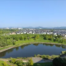 ウッディタウン中央駅に着くと、すぐそばに神戸三田ホテルがあります。近くにはイオンやロピア・業務スーパーがあって買い物に便利な場所です。ホテルのエレベーターに入るとラベンダーの良い匂いがします。三田の美しい景色が広がっているホテルです。