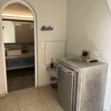 チェックイン時間前に到着しました。荷物を預けてサントリーニ島を散策しようと計画していましたが、クリスティーナさんが予約を処理し、チェックインの手配をしてくれました。ポーターも素晴らしかったです。私たちの 4 つの重い荷物をホテルの階段を上って部屋まで運んでくれましたが、その後は息切れしていましたが、笑顔でやってくれました。バルコニーからの眺めは最高でした。部屋は清潔で、朝食も素晴らしかったです。サントリーニ島にまた行くことがあれば、ぜひまたここに泊まりたいです。