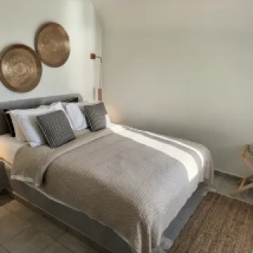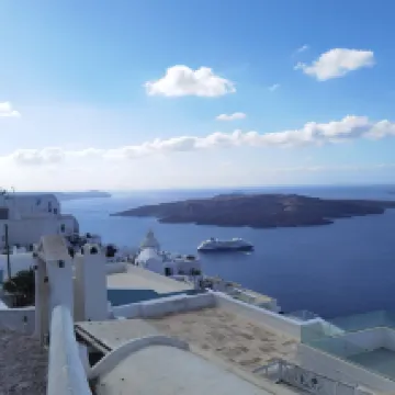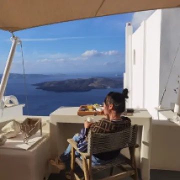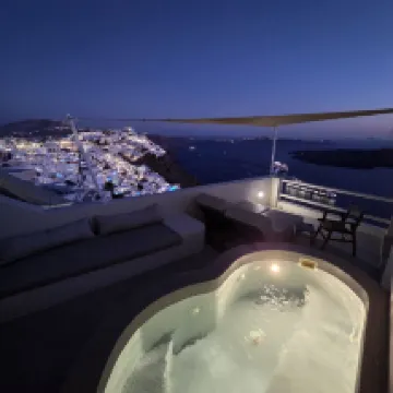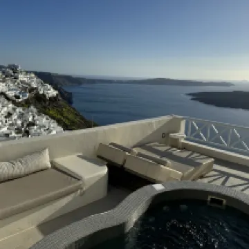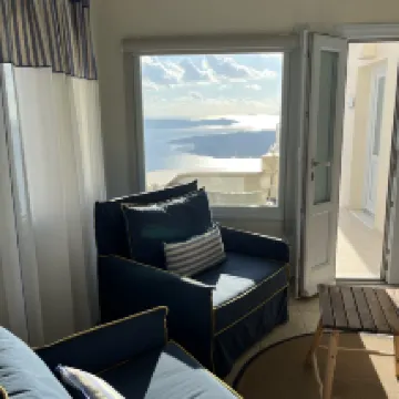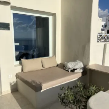 ハネムーンスイートに宿泊。眺めは綺麗だがバス停まで下りでも20分くらい歩く。車が通る鋪装された道をまっすぐ上がってくるのがおすすめ。島内の石畳の道は入りくんでいて歩きずらく更に距離を感じた。 フィラのメイン通りから離れているが、写真を撮りに敷地内をよじ登っている人がテラスから見える時があった。 値段の割にホスピタリティーは改善の余地あり。 どの部屋ともテラスから顔が見えてしまうのが残念。 朝ごはんはパン多め。 わざわざハネムーンスイートに泊まるより、バルコニー付きのお部屋であれば満足できそう。 海がとても綺麗なので、部屋のプールより ビーチの方が楽しそうだった。 フロントに無料のウォーターサーバーがあり 部屋にも水1.5L付いていた事が良かった。 青いドームはやはりイアで見るのが一番綺麗だった。
