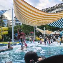 部屋は清潔で、子供用の遊び場も充実していました。 屋外の子供用ウォーターパーク、2色のスパイラルウォータースライダー:子供たちは大喜びで、ライフガードもそばにいました。 ミニバー:豊富なドリンクが揃っていて、使い切ると補充してくれました。 島での親子旅行の写真撮影 - 電子ネガ5枚:チェックイン後、スタッフは写真撮影の予約時間について電話で問い合わせてくれました。サービスはとても良かったです。