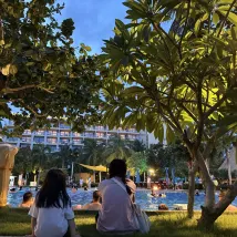 今回の旅行は、思いつきで予約した期末旅行でした。子供たちはとても楽しんでいました。プールが一番のお気に入りで、夜のカニ狩り、ファイヤーダンスショー、バブルパーティー、プールサイドのホットポットなども楽しめました。また次回も来ると言ってくれました。ニコルさんには、最初から最後まで親切にサポートしていただき、感謝しています。対応の速さは申し分ありません。 設備:2016年に改装されたにもかかわらず、よく整備されています。ヤシの木立、芝生、プルメリアの花、そして空気は甘美です。 環境:部屋のバルコニーからの眺めは最高です。 サービス:ホテルに到着した瞬間から、至る所でホテルのブランドを反映したサービスが感じられます。ホテルはとても大きいですが、シャトルバスがいつも見えます。日が沈んだ後は、庭を散歩するのがとても気持ちが良いです😌 ちょっとしたアドバイス:速乾性のある服を持っていくのがおすすめです。湿度が高く、バルコニーがあって日差しが強くても、想像していたほど早く乾くことはありません。