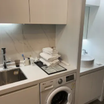 とても綺麗で部屋も広く、冷蔵庫が大きいサイズで冷凍室もあるのでとてもいいです。特に除菌消臭スタイラーがあって便利でした。コンセントもワールドマルチタイプのがたっぷりあるのでスマホ充電には困りません。がドライヤーをするのに鏡のある洗面台にコンセント挿し口がない、コンセントがある所には鏡がないのでちょっと不便でした。立地は渡ったらナンデムン、市バス(?)のバス停が真ん前で、空港バス乗場も2分くらいでとても便利、地下鉄駅は歩いて10分以内に1、2号線市庁駅と4号線会賢(フェヒョン)駅があります。