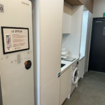 立地も良く綺麗で快適だった。1人を除いて、スタッフも概ね親切で親しみやすかった。 周辺にいろいろなレストランやカフェなどもあり、また明洞ほど混んでいないので楽しむことができた。 LGのスタイラーがあるので、大変重宝した。