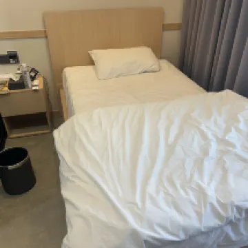 正直に言って、シーツや布団カバーがすごく汚れていました。帰ってきたら、交換されたばかりのシーツと布団カバーに大きな髪の毛の塊が!ロケーションは悪くなく、すぐ外にバス停があって、新世界免税店にも一番近いです。でも、次回は絶対に利用しません。衛生状態がひどすぎるし、さらに!出前が盗まれました。