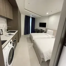 ホテルからの返信: お客様へ、この度は、ホテル The BOTANIK Sewoon Myeongdongをご利用いただき、ありがとうございます。お客様が当ホテルの清潔さやさまざまな施設にご満足いただけたことを大変嬉しく思います。水道の蛇口の小さな問題に関しては、次の日にソウルタワーが見えるより良い部屋へのアップグレードができたことを嬉しく思います。冷蔵庫、キッチン、洗濯機、エアドレッサーなどの設備が、まるで自宅のように快適に感じていただけて幸いです。周辺の工事についてご理解いただき、地下鉄駅への便利なアクセスにもご満足いただけたことを嬉しく思います。女性同士でも安全に宿泊できるとご推薦いただき、ありがとうございます。今後、またお客様をお迎えできることを楽しみにしております。敬具、Hotel The BOTANIK Sewoon Myeongdong