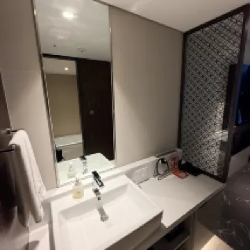 午後2時半過ぎに到着し、すぐにチェックインできるかと思いましたが、パスポートを確認された後、脇で待たされました。しかし、地元の方は直接カードキーを受け取って部屋に向かっているのが見えました。結局、私たちがカードキーを受け取れたのは2時50分過ぎでした。予約時には、高層階でエレベーターから離れた静かな部屋を希望すると特に伝えていましたが、案内された部屋はロビーのすぐ上の階で、しかもエレベーターのすぐ隣でした。リクエストは全く無視されていました。また、宿泊中、部屋に水が補充されることもありませんでした。これらの点には非常に不満を感じました。 良かった点としては、毎日フェイスパックとアイマスクをいただけたことです。部屋の広さも悪くなく、防音もしっかりしていて、騒音もなくぐっすり眠れました。唯一の欠点は、明洞のショッピングエリアから少し距離があることです。たくさん買い物をして帰るときは本当に疲れました。それから、朝食の種類があまり多くなかったのも少し残念でした。