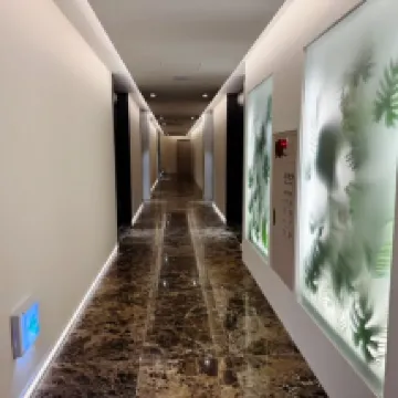 ホテルは地下鉄駅から徒歩10~15分ほどの便利な場所にあります。場所も分かりやすく、すぐに見つかります。階下には本格的な韓国料理のレストランが並ぶグルメストリートがあります。客室は広々としていて明るく、とても清潔です。強くお勧めします!