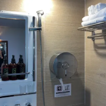 チェックインしたフロントの人は、よく対応してくれたのですが、一緒に行った友人が部屋に入った途端、咳がとまらなくなりました… 消毒の匂いがきつくて、のどをやられてしまったようです😭 この状況では、絶対に寝れないと確信したので、即チェックアウトをしました。 他の部屋を案内しようか?とフロントの人は言ってくれたのですが、おそらく他の部屋も匂いは同じなので… 立地もよく、部屋は綺麗だったので、残念です。 口コミにあるように、バスルームは本当に本当に狭いです。 アメニティも口コミにありましたが、なしです。 私達は、エステを予約して、しゃんぷーから垢すりまだ全てやってもらったので、バスルームは使いませんでした。 というか、ホテル自体も使いませんでした…