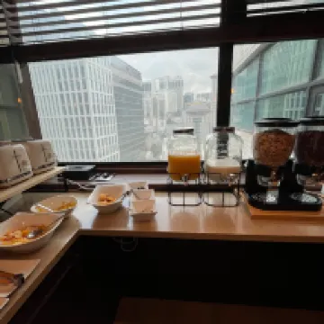 ユースホステルのような雰囲気でした。部屋は非常に狭いですが、狭いながらも必要な設備は全て揃っていました。無料の朝食が提供されており、食後は食器をセルフサービスで片付ける方式です。ウォーターサーバーや電子レンジも完備されています。ホテルを出るとすぐに明洞の繁華街で、向かい側には新世界百貨店があり、非常に便利でした。