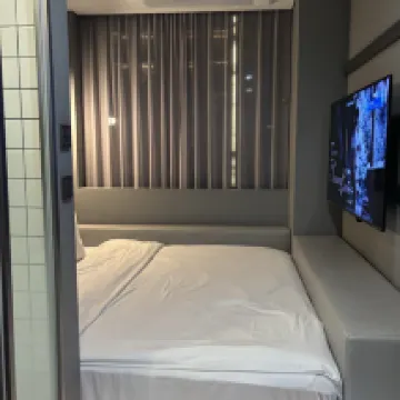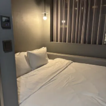 個性的なホテルで可愛いかったです!カフェも併設されてますので落ち着ける空間また、部屋によってペットも一緒に泊まれるとのことでした! お部屋は、ベッドが大きくて枕も沢山あるので自分の好きな高さや調整等しやすく様々なタイプの人にも合うと思います。 綺麗に清楚もしてくださいました。 ほぼ寝るだけでしたので大きな問題はありませんが、 個人的には、薄いカーテンが一枚のみで反対側のホテルの部屋が見えてしまう点,バスタオルを1枚使用すると追加の補充はなく元々あったもう 1セットだけが置かれていたことが気になりました。テーブルがないので食事は、ベッドの足元テレビ側の所に置く形となります。 気になる点いくつか挙げましたが、荷物も預かって頂けますし対応も問題なく、駅からも近くて過ごしやすかったのでまた泊まりに来たいです。
