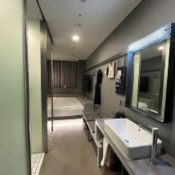 ダウンタイム利用でした。カンナムから歩いて20分程度です。広いベッドで1人で滞在できて良かったです。素敵なホテルでした。一点、アイスパックを冷凍する必要がある方は冷凍庫が無いので注意してください(写真参照)