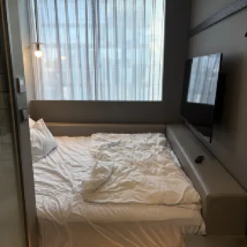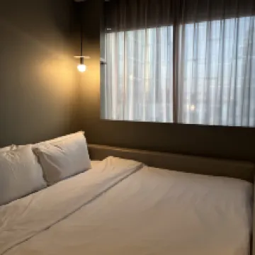 カンナムエリアのデザイナーズホテルで9号線オンジュ駅から100mくらいの宿です。空港バス停も目の前、カンナムやCOEX方面も近く結構便も良かったです。高台に建ってるホテルだったので見晴らしは最高!ただ坂道がちょっときつかった。部屋もシックで清潔でベッドも広くて寝心地が良かったです。