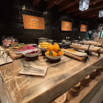 部屋は広々としていて、希望通りの高層階に案内されました。 ビュッフェレストランも素晴らしく、朝食と夕食を体験しましたが、種類が豊富で品質も良かったです。 ホテルの立地も比較的便利で、景福宮に近く、空港バス停もすぐ隣にあります。