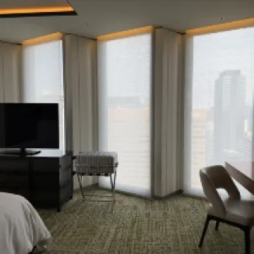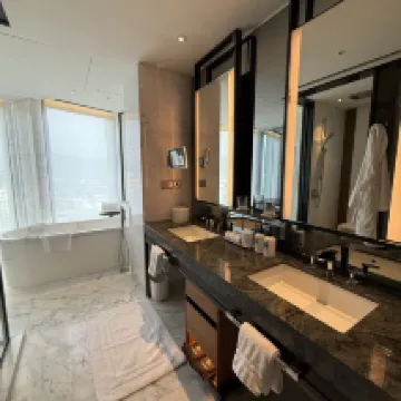 とにかく、お部屋の雰囲気が、綺麗でオシャレで最高で、ラグジュアリーホテルでした。 洗面などの水回りも、大理石で、二人分あって、 広々でした。 お部屋に入ると、同時に自動カーテンが開いて、 外の夜景🌃も素敵でした。 また、泊まりたいです。