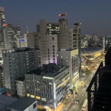 初めて利用しました。1泊7000円台の予約でしたが最上階でした。フロントの方は親切でした。東大門ナイトショッピング後ホテルに戻る事を考えると自分的には最高の立地&コスパです。DDP方面からホテルへの大通りは夜中でも明るい方で安心でした。また機会があれば予約したいです。