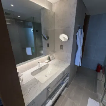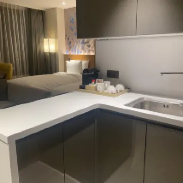 立地:龍山駅と連絡通路で繋がっていて、徒歩5分圏内でホテルに到着できます。非常に便利です。龍山駅とソウル駅は2駅しか離れていません。仁川空港からはUberで約250元、1時間ほどで着き、これもまた便利でした。 部屋:今まで泊まったホテルの中で、ほぼ一番広い部屋でした。40平米あり、二人掛けソファとリクライニングチェアがありました。さらにキッチンもあり、バスルームもウェットエリアとドライエリアが分かれていました。ベッドは少し小さく、たぶん80cmくらいでした。 サービス:フロントの女性スタッフがとても美しく、まるで韓国の芸能人のようでした。南山タワーが見える部屋にしてくださり、感謝しています! 環境:ノボテル スイーツとノボテル ホテルは同じ建物内にありますが、エレベーターは別々なので、注意が必要です。 コストパフォーマンス:元旦のソウルで一泊800元強でした。朝食は含まれていませんでしたが、この素晴らしい立地と広い部屋を考えると、すでに非常にお得です。とてもおすすめです。次回は朝食も体験しに来る機会があればと思います。