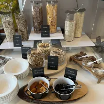 数日前、夫と私はホテルにいました。 すべてがとても気に入りました。部屋は清潔で、暖かく、静かで、バスルームにはバスタブ自体、ヘアドライヤー、必要な容器などすべて揃っています。スリッパ以外はすべて揃っています。 地下鉄に近い(駅まで5分) 私は特にホスピタリティが気に入りました。受付の女性たちはフレンドリーで(特にサブリナ、私の記憶が間違っていなければ)、ロシア語を話し、交通機関への道順を教えてくれました。 私たちはホテルで朝食をとりました。予算はそれほど高くありませんでしたが(1人あたり20ユーロ)、賞賛に値するものでした。 朝食ビュッフェ - 美味しくて、さまざまな食べ物の選択肢があります(グルテンフリー、ナッツ、ドライフルーツ、オムレツ、コーヒー、ジュース、チーズやハム類の豊富な品揃え)