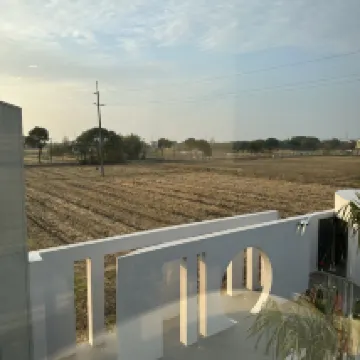 1. 場所は田んぼの真ん中の小道沿いです。 2. 部屋にビスケットの包み紙がまだ残っています。 3. 部屋の前の屋外シャワーは水が出ず汚れているため使用できません。 (写真添付) 朝食はシンプルで、パオ2枚と温かいピーナッツミルクでした。