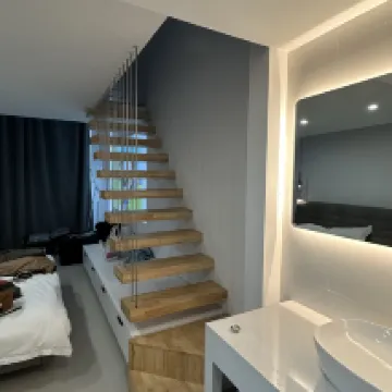 ホームステイへの往復には Didi を利用しました。ホームステイは村のようなエリアに新しくできた施設のようでした。101 号室に宿泊しました。ベッドはとても快適 (中程度の硬さ) で、レインシャワーの強さも十分でした。歯磨きセットと寝室用スリッパも十分に用意されていました。ドアの鍵は故障していましたが、ディズニーランド旅行から夜遅く戻ったときでもオーナーはとても親切で、電池交換や鍵の修理を手伝ってくれました。ホームステイではディズニーランドへの送迎も提供してくれました。10/10 のサービスです!