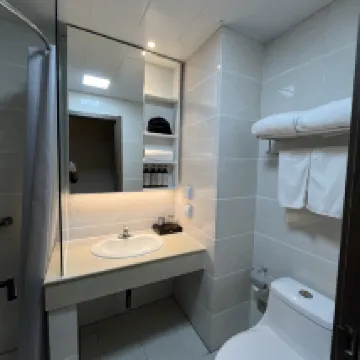 部屋は設備が整っていて、寝具は乾いていて快適で、冷蔵庫が備え付けられており、バスルームはウェットルームとドライルームに分かれており、ウェイターは熱心です。駐車スペースはたくさんあります。市内中心部(自由貿易地域)からは離れていますが、地下鉄の駅からは徒歩 7 ~ 8 分です。また、自由貿易地域内の無料バスで 2 駅で地下鉄にアクセスできます。地下鉄は四方八方に伸びており、主要な観光スポットは比較的集中しており、地下鉄に乗り換えることなく直接アクセスできます。