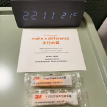 このホテルは展示会のために予約しましたが、展示会場までタクシーで10分で行けるのでとても便利でした。フロントのXiaofangさんとXiaozhangさんのサービス態度はとても良くて丁寧でした。 「Do Not Disturb」では、掃除をするのに都合の良い時間を尋ねます。部屋にはすぐに水が補充されました。テーブルはテイクアウトに便利です。