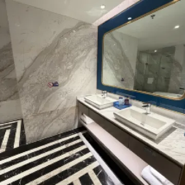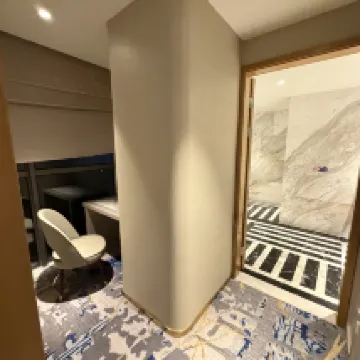 ホテルの立地は素晴らしく、海昌海洋公園への専用通路もあります。キングサイズのベッドルームには小さなソファがありましたが、チェックインが遅すぎました。週末は人が非常に多く、午後2時までルームキーを受け取れませんでした。子供はお昼寝の時間だったので、融通を利かせて部屋を用意してほしかったです。朝食は8時には長蛇の列で、体験としては最悪でした。立地が良いこと以外は。